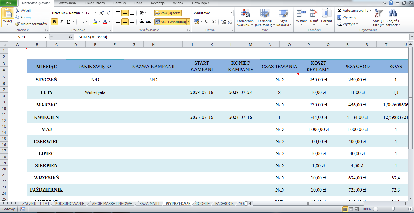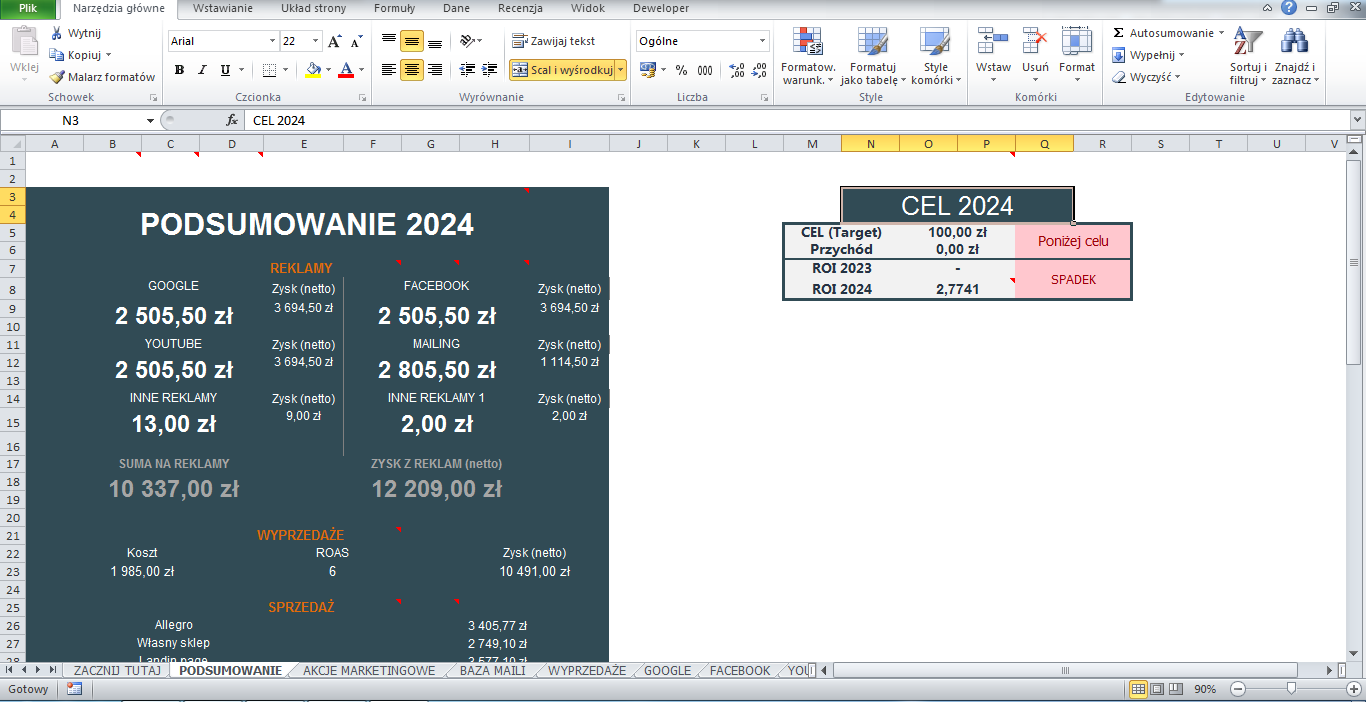 Sięgnij po ten dokument marketingowy i na bieżąco notuj swoje wydatki i zyski, aby mieć pełen wgląd w to, jakie kampanie przynoszą Ci największe zyski!