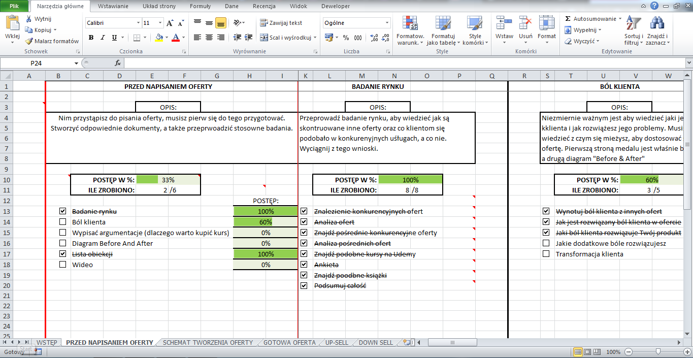 - Indywidualny arkusz Excel – stworzony z uwzględnieniem Twoich wymagań i oczekiwań.